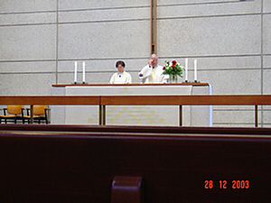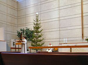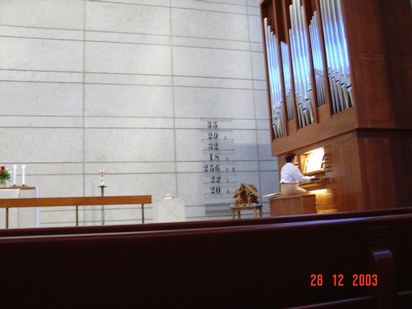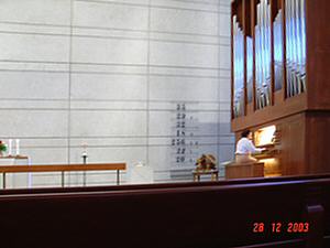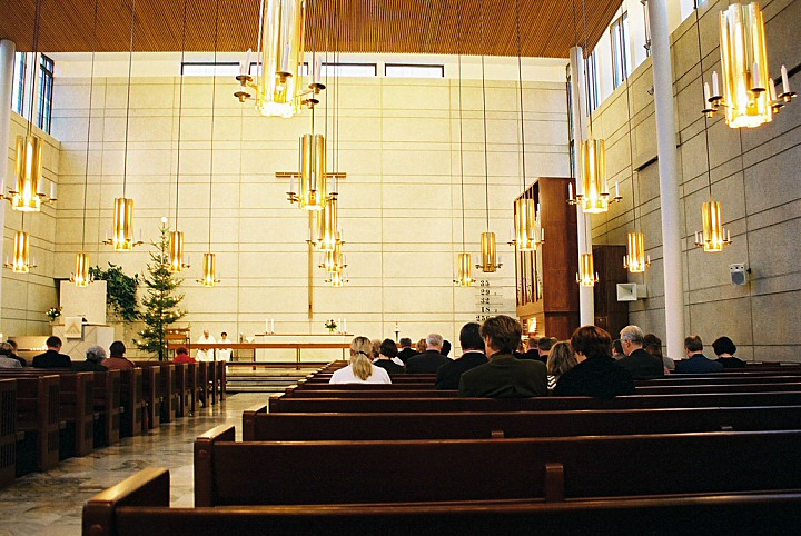 Seurakunnan kanssa oli jo kesällä sovittu, että jumalanpalveluksen tulevat hoitamaan legendaariset nuorisotyöntekijät Silja ja Juhani Forsberg, jotka asuvat Saksassa tällä hetkellä. Kirkkosali oli muuten yhtä valoisa ja kaunis kuin ennenkin. Vain urut alttarilla olivat monille ennen näkemättömät.